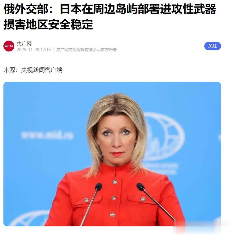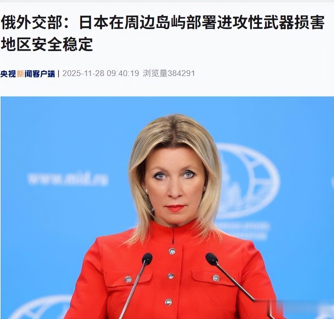 11月28日,扎哈罗娃的警告措辞再次升级,直接对准了日本在与那国岛部署导弹的行为。