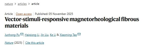 近日,国际顶级学术期刊《自然》(Nature)发表了一项来自香港理工大学的研究成果:一种能够对磁场方向与大小做出精准反应的“向量刺激响应磁流变纤维材料”,实现了布料在磁场下的定向弯曲、硬化、剪切与线性运动。该技术有望应用于智能服装、软体机器人、可穿戴触觉设备等领域,标志着智能纺织品从“感知”迈向“响应”。