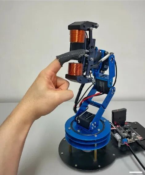 更令人惊叹的是,团队还开发了一款无线触觉指套。戴上后,通过远程控制磁场,指套能模拟出不同布料的“柔软感”与“光滑感”,仿佛指尖真实触摸到不同材质的织物。这对于远程购物、虚拟试衣,甚至远程手术培训都具有潜在价值。