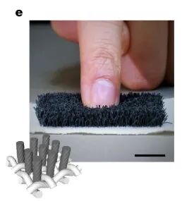 割绒织物则像一块柔软的地毯,表面立着无数微小磁纤。在倾斜磁场中,它们能整体剪切移动;在垂直磁场中,则能整体变硬。研究人员用它制作了一款自适应抓取器,能轻柔地抓起豆腐、活虫、薯片等易碎物品,而不会造成损伤。