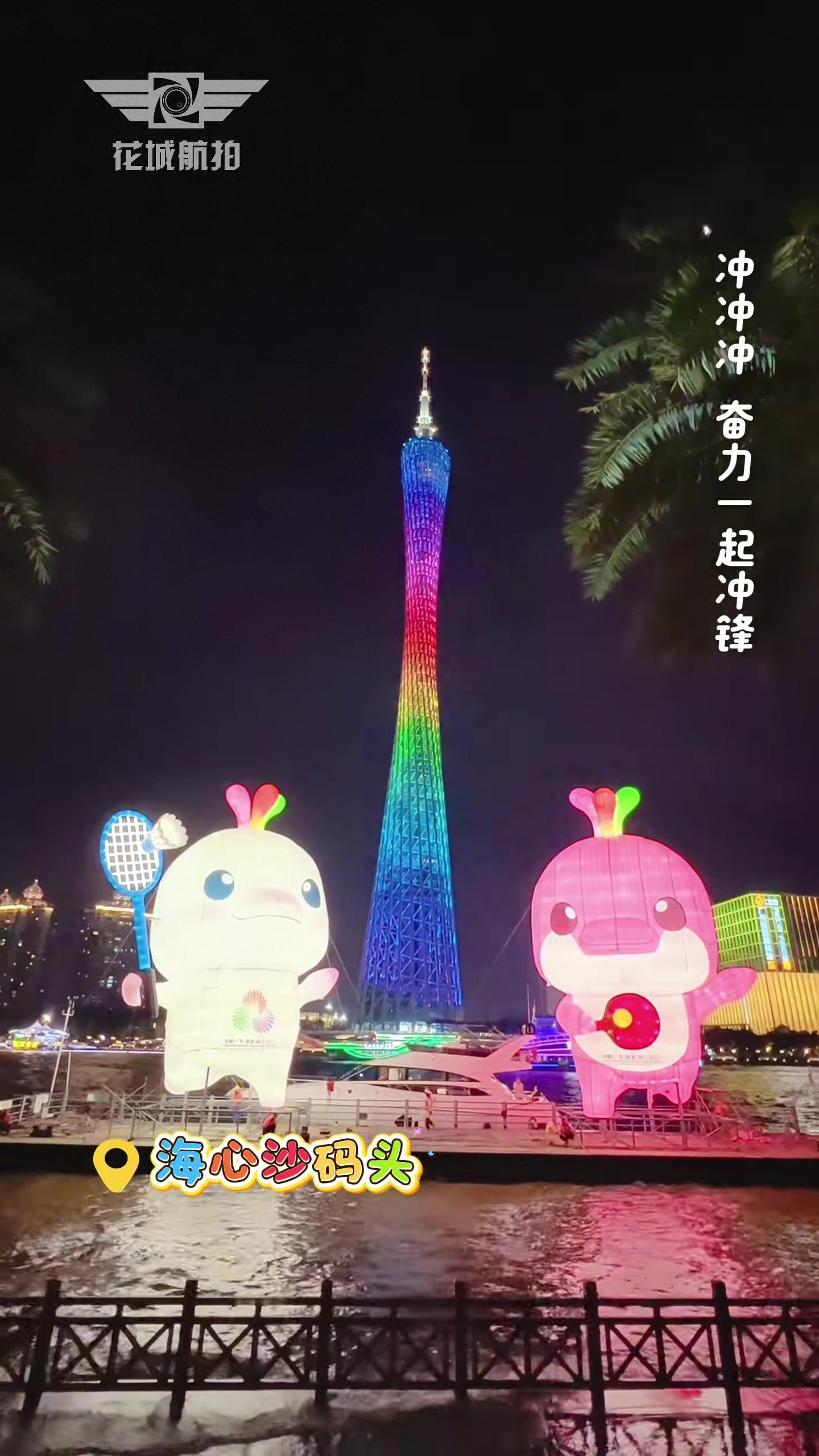 市民与游客可在珠江沿岸多个观景点欣赏并打卡这一集体 育精神、非遗匠心与城市美学于一体的艺术装置。项目的落 成,不仅为广州赛区营造出热烈浓厚的全运氛围,也标志着 广州在大型活动视觉营造与创新传播上的又一次跨越。