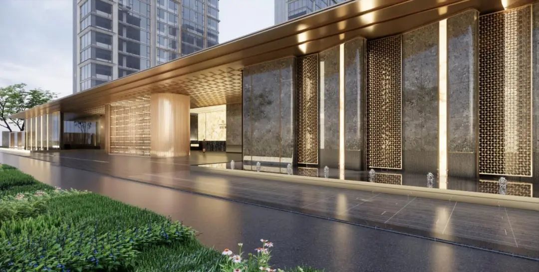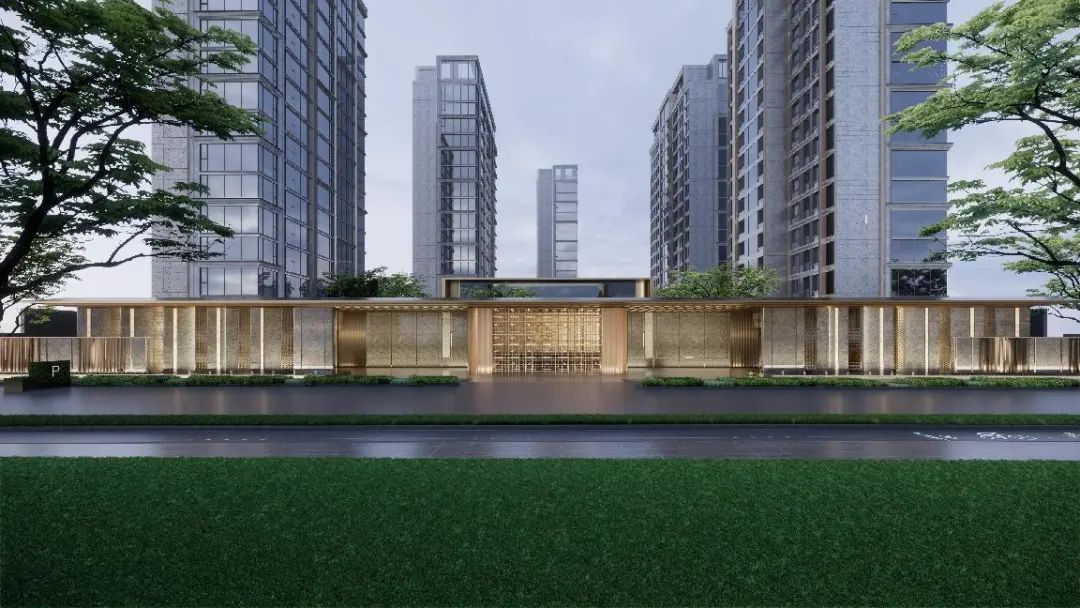 从建筑品质看,安澜府采用玻璃幕墙与干挂石材结合的外立面设计,整体质感出众。主大门设计尤为震撼——高达6.6米,宽度达88米,大面积使用高档石材与铝板材质,营造出恢宏的归家仪式感。