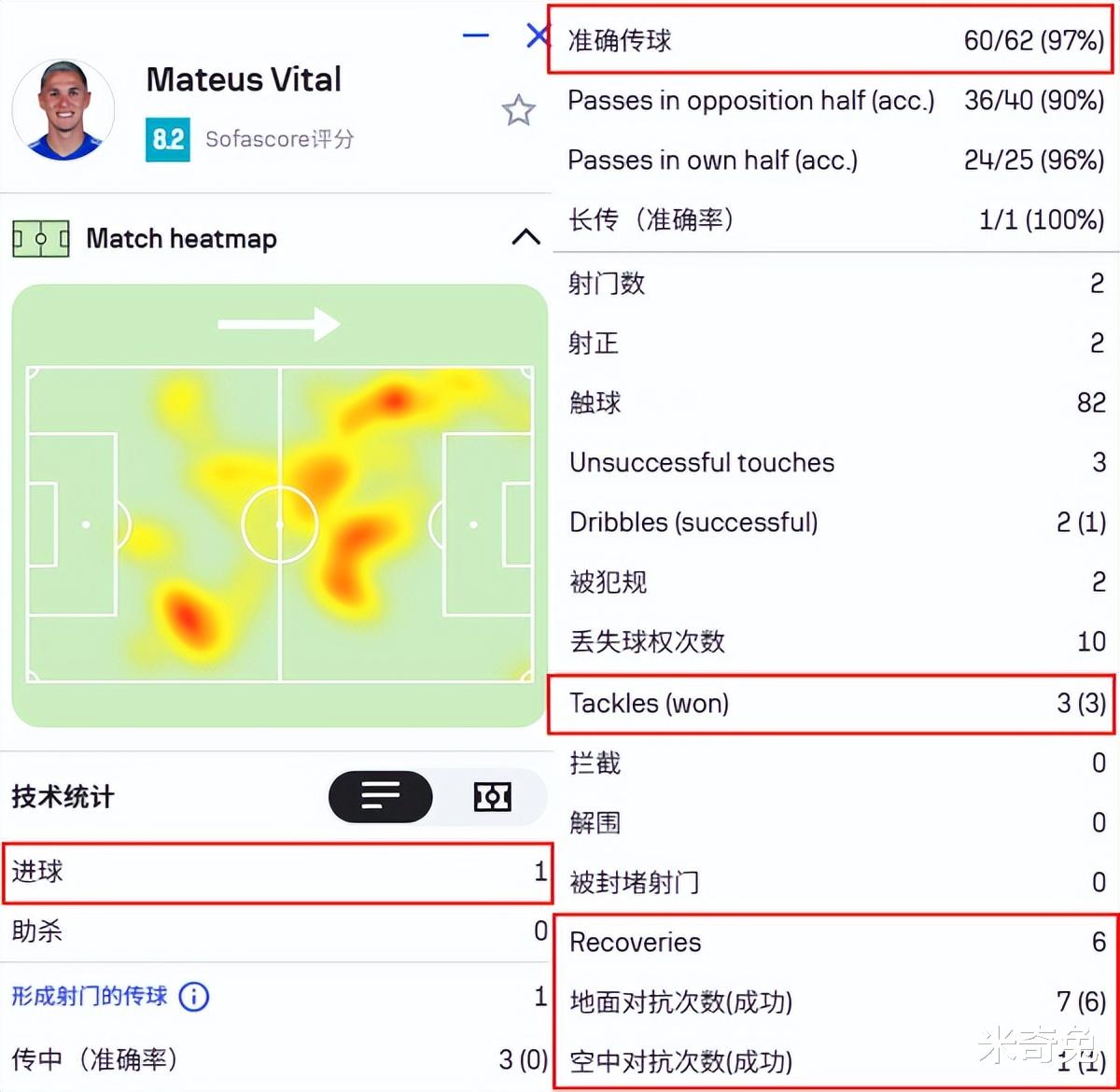 更重要的是,维塔尔全场8次一对一赢下7次,3次抢断全部成功,传球成功率高达97%。他和魏震一起,限制住了米特里策,也让王燊超可以放心投入进攻。