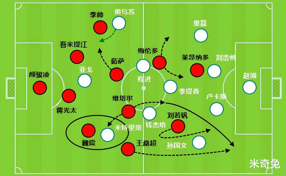 过去2场穆斯卡特的战术变化上很有细节,上一场是李新翔奇兵,这场是王燊超和刘若钒这边既可以有球配合后穿插,也能无球打开宽度等转移后点。