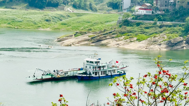 这是一条免费的过江轮渡航线,连接着嘉陵江西侧的施家梁镇和东侧的水土老街。