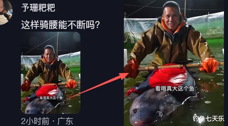 不过,有网友贴出了老麻雀骑在大鱼身上的照片,内涵这条青鱼王的脊椎,就是被老麻雀本人给活活“骑断”的。
