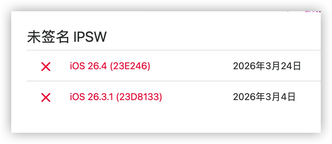 所以,别再到处找 iOS 26.4 的固件包了,找到了也刷不进去。