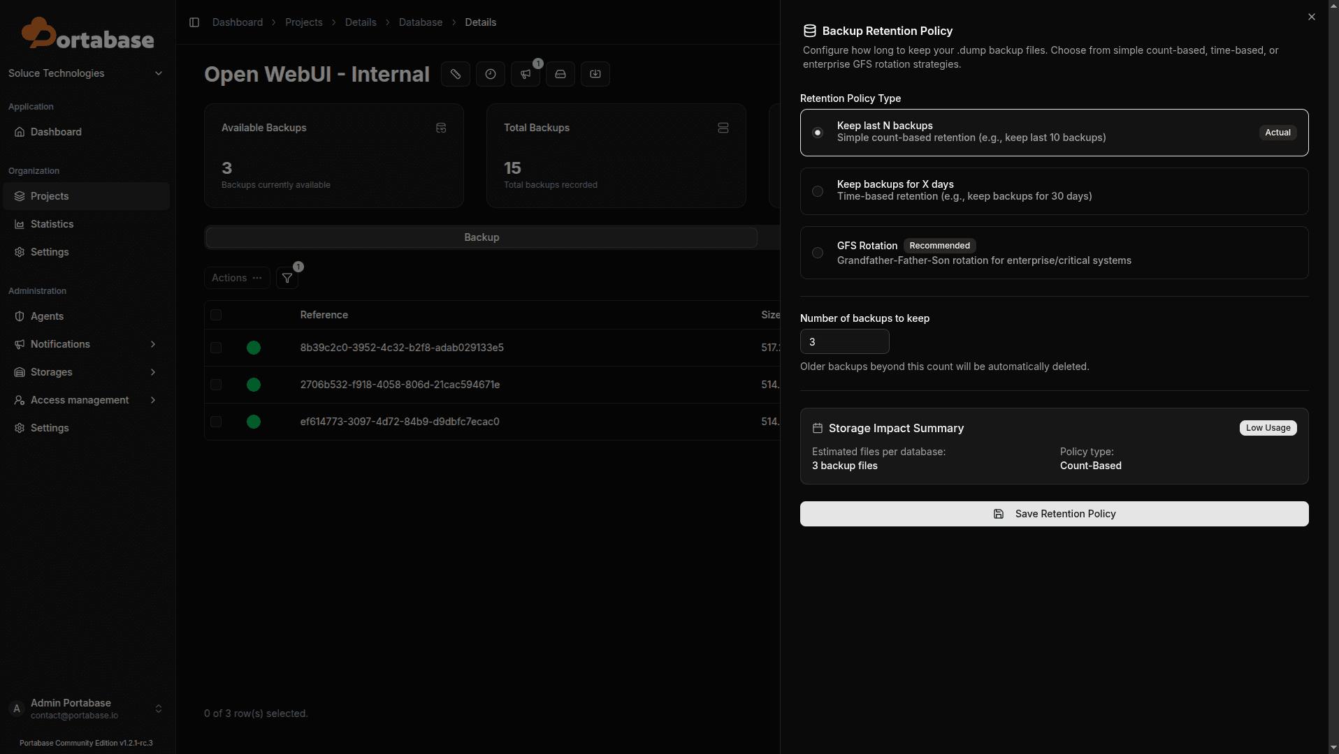 更高级的逻辑备份管理Portabase 并不是简单的“脚本执行器”,它封装了完整的备份生命周期管理: