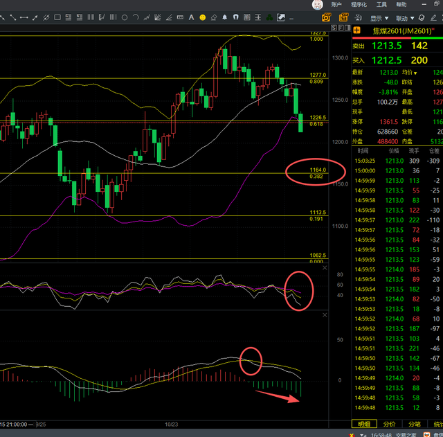 技术面:日线:空头排列,5/10/20 日均线依次向下,MACD 绿柱增长,RSI 接近超卖区(30 附近);关键支撑:1210-1215 元(日内低点)→ 1200 元(心理关口)→ 1180 元(前期平台);关键压力:1240-1245 元(结算价 + 日内反弹高点)→ 1250 元(整数关口)→ 1270 元(日内高点);形态:下降通道中运行,短期超跌但反弹乏力,整体弱势难改