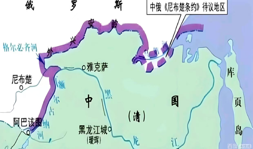 最后达成的条约就是中俄《尼布楚条约》,从法律上划分了两国东部的边界,尼布楚附近的土地归沙俄,雅克萨区域的土地归大清,双方以额尔古纳河、格尔必齐河外兴安岭至海为界。