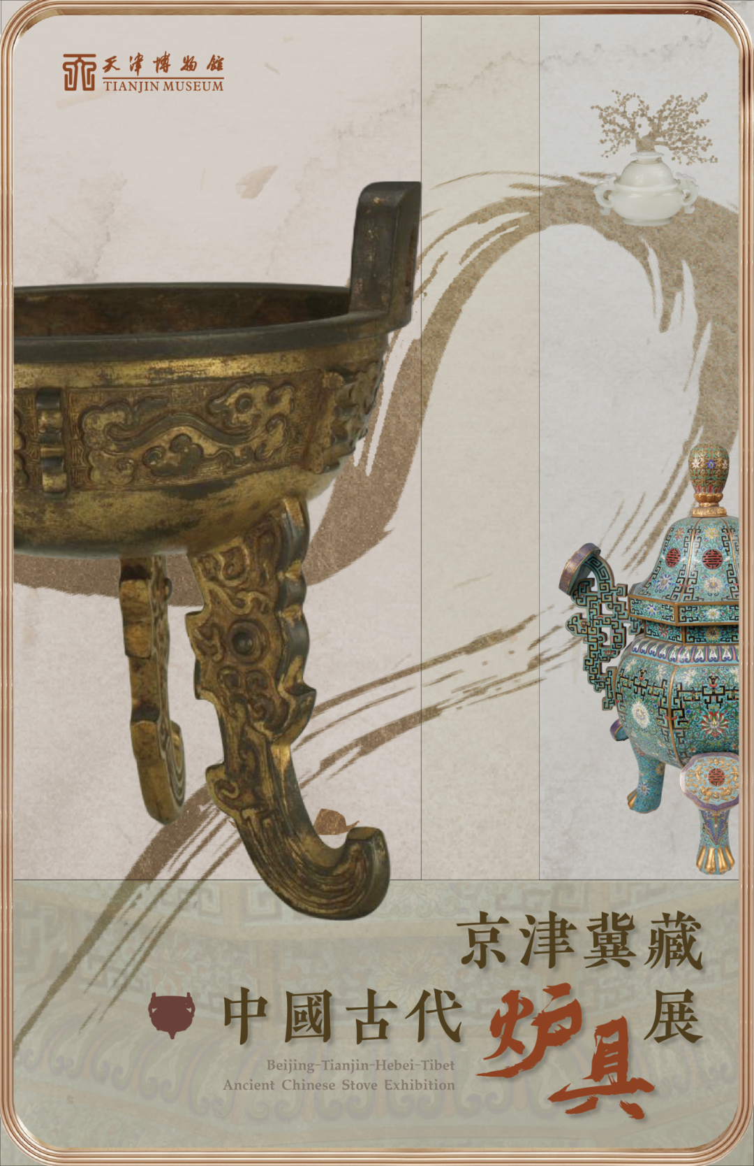 本展览以天津博物馆馆藏中国古代炉具相关文物为基础,遴选新入藏铜杂文物中工艺精美的炉具珍品,并汇集京冀两地博物馆精选馆藏及出土炉具文物150件。展览旨在探究炉具在古代人们生活中的功能价值,挖掘其承载的古代熏香文化内涵,为观众全景式呈现中国古代炉具的使用风貌。