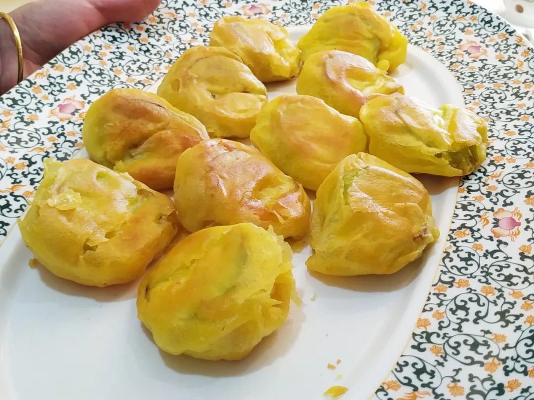 炸茄盒是东北的家常菜,传统炸茄盒是黑皮茄子夹肉,外面裹糊炸。