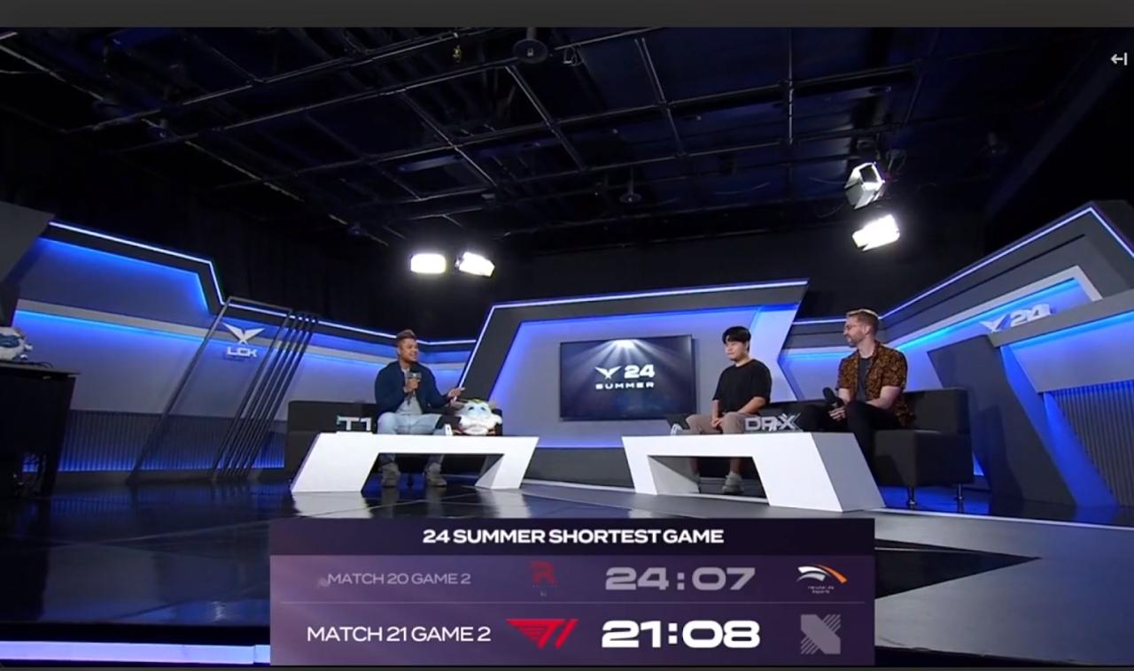 第二局结束的时间定格在21’08,也刷新了2024LCK夏季常规赛单局最快记录,而此前最快记录的保持者是HLE,用时24分07秒拿下了KT。