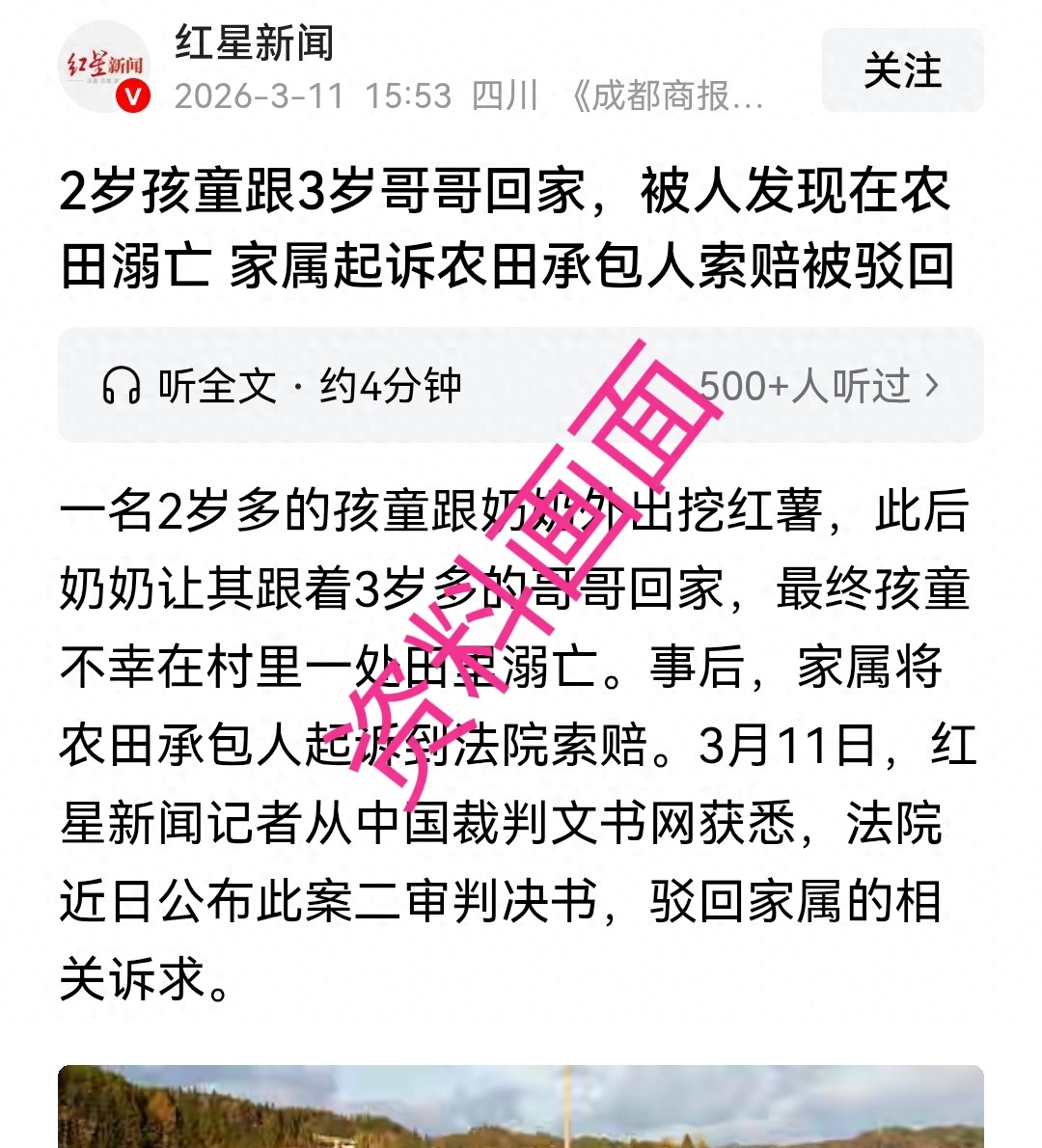 法院连续驳回索赔,就是在明确告诉所有人: 监护缺位,就是最大的安全隐患。2岁的孩子,连危险都分不清,让他跟着3岁的孩子独自走在乡间路上,本身就是对生命极不负责。真正该反思的,从来不是无辜的第三方,而是未尽到责任的监护人。
