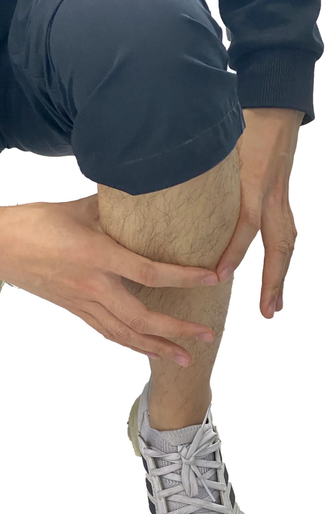 咱们可以用一个简单的方法测测:双手圈一下小腿最粗的地方,如果小腿明显细于这个圈,那提示有可能存在肌少症。