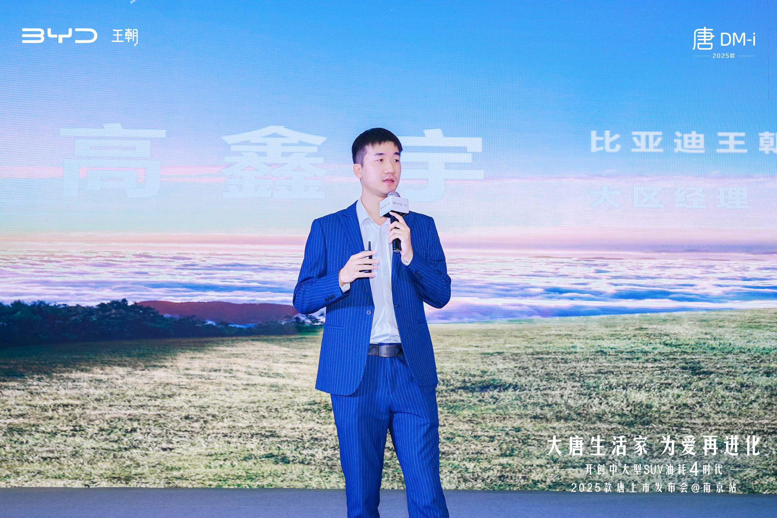 比亚迪王朝网大区经理高鑫宇先生发表了精彩致辞。他回顾了比亚迪在新能源领域取得的辉煌成就,并对未来发展充满信心。他详细介绍了2025款唐DM-i在外观设计、核心技术和驾乘舒适性等方面的全面升级,并表示比亚迪将继续努力,为消费者带来更好的新能源汽车产品。