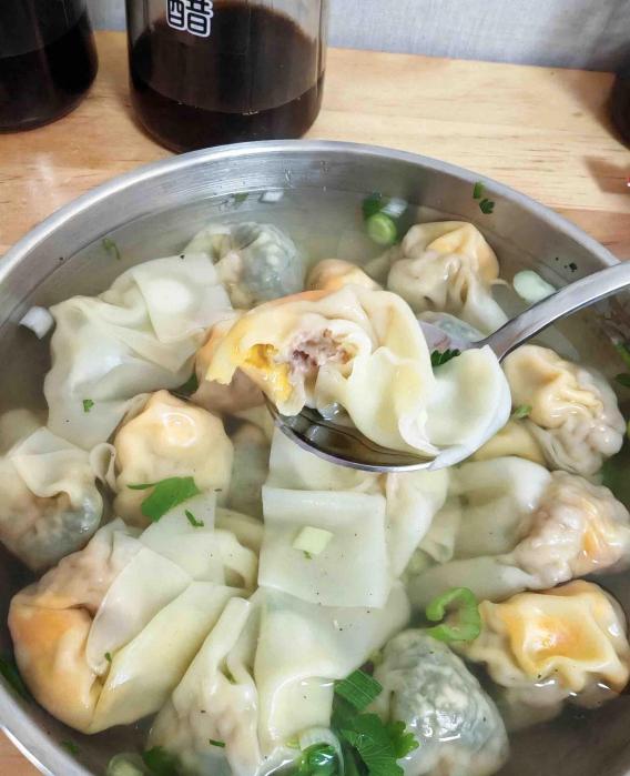 鲜肉馄饨皮薄馅饱,汤头鲜醇,撒虾皮香菜更提味,刀鱼馄饨鲜掉眉毛,每一个都饱满,早餐吃一碗暖乎乎。