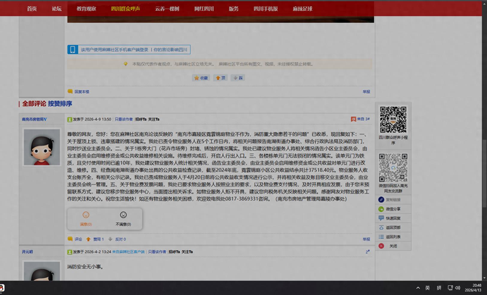 堂堂一个市房管局,难道工作人员中竟无识文断字之士?否则怎会出现如此状况!究竟是“麻辣社区南充论坛”还是“麻辣社区南充论谈”?连这么简单的名词都会打错,工作能力未免也太“强”了些吧!认真细致的工作态度,体现在哪里呢?莫非体现在“麻辣社区南充论谈”?这几个字里面