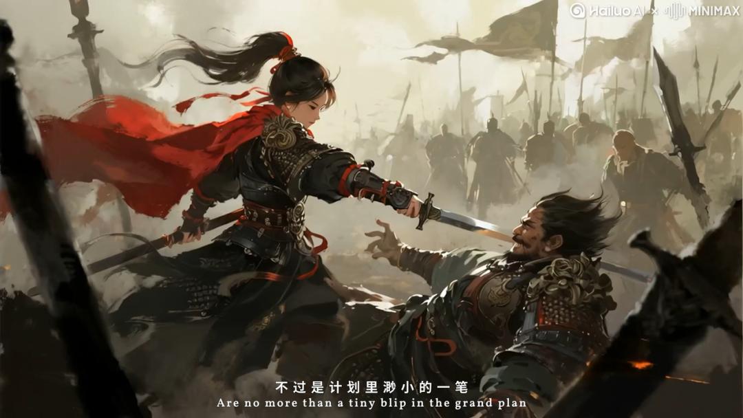 这段4分钟的短片有两大突出亮点,一是用海螺AI生成了一镜到底且包含大量打斗动作的画面,而之前的AI视频多为慢镜头,这展示出技术在人物场景一致性、物理运动准确性上的进步,二是融入国风水墨画风与传统民乐,呈现出AI加持下的新型国风表达。