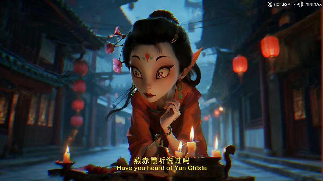 一些作品让传统文学经典IP实现了创新表达。比如腾讯视频首届AI短片创作大赛中的二等奖作品《聊斋志异:燕赤霞》,由光影几何工作室的“猫大人爱睡大觉”创作,讲述道士燕赤霞从无差别灭妖到护妖的转变故事。