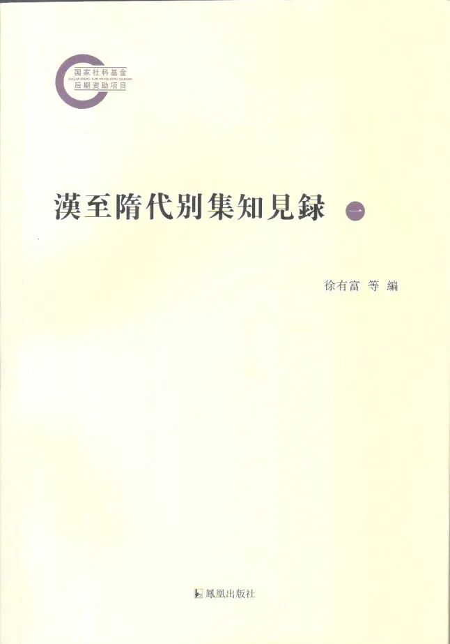 《汉至隋代别集知见录》,徐有富、徐昕编著,凤凰出版社2025年12月版。