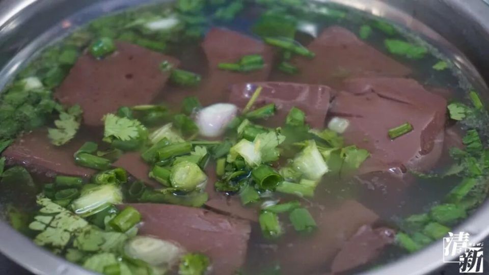 煮好的猪红色泽红润,轻咬一口,外层微弹,内里嫩滑如豆腐花,轻咬即化却不失韧劲,只留食材本身的清甜与汤汁的鲜香在口中交织,暖心又暖胃。