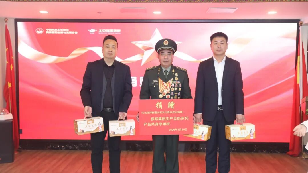 河北振邦集团闫志超总经理亲手将一箱箱精心准备的优质豆浆送到张茂忠英雄的手中,并捐赠振邦集团生产豆奶系列产品终身享用权。一份份豆浆,不仅是营养健康的生活物资,更是沉甸甸的关爱与敬意;而“终生为老兵提供豆浆”的承诺,更是让这份关爱跨越时间,温暖老兵的岁岁年年。