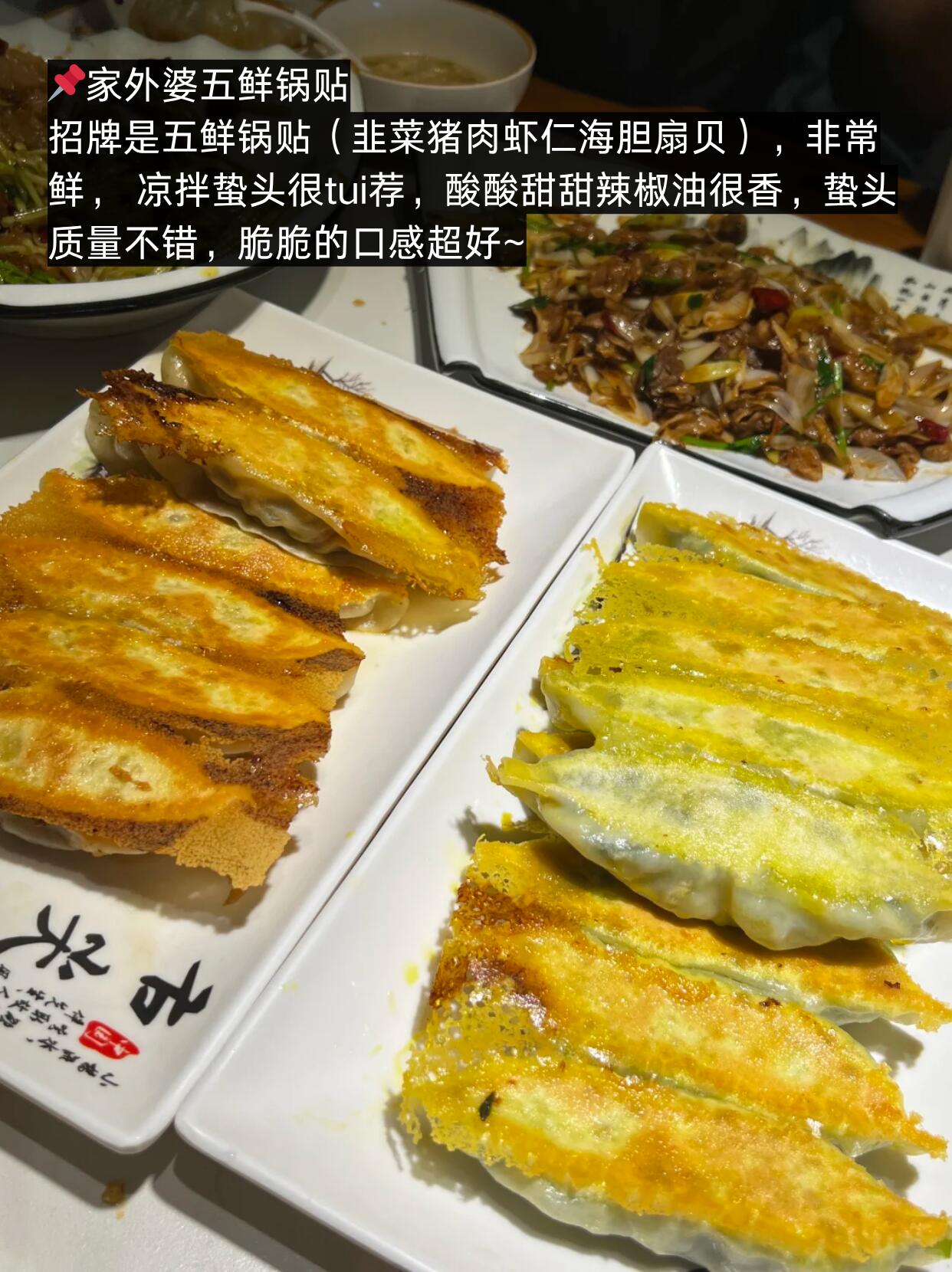 招牌是五鲜锅贴(韭菜猪肉虾仁海胆扇贝),非常鲜, 凉拌蛰头很tui荐,酸酸甜甜辣椒油很香,蛰头质量不错,脆脆的口感超好