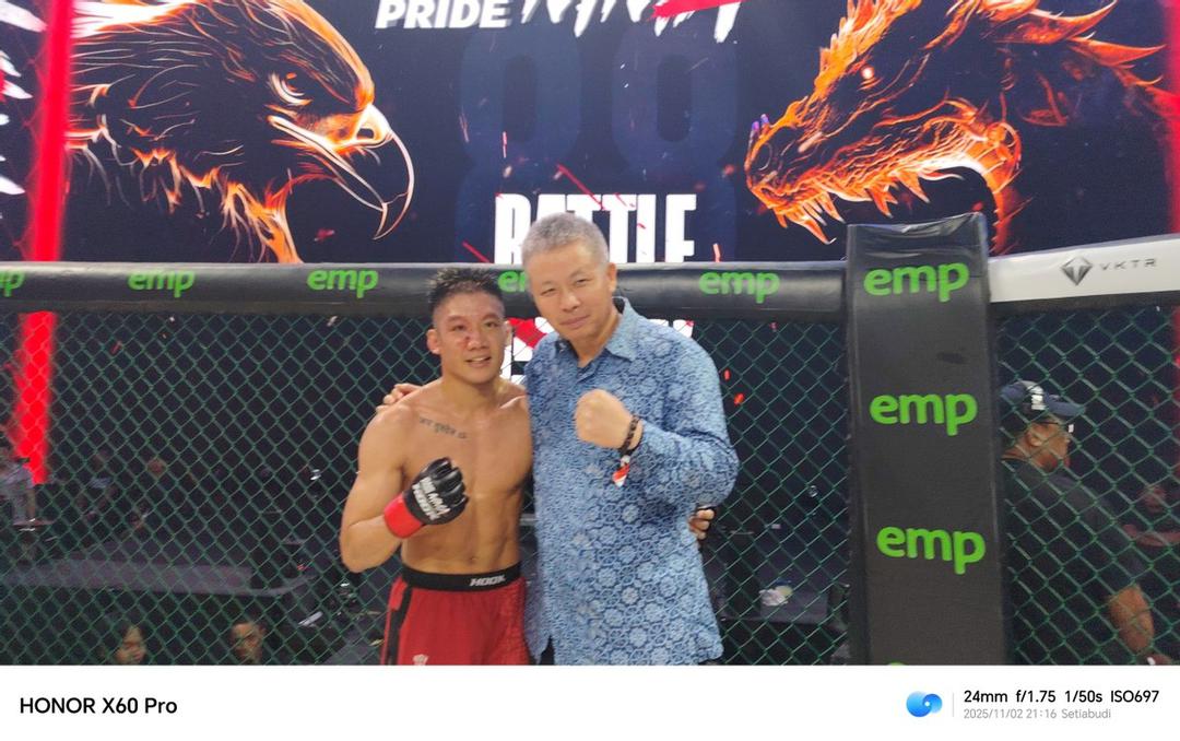 印尼共工新闻社讯(记者龚全元)11月月2号周日19:00举行一场名称为“義冠军赛&ONE PRIDE MMA(雅加达站)”由印尼、中国、马来西亚拳击手运动员前来参加的国际综合格斗(MMA)擂台赛,赛事地点在雅加达南区高级Super house酒吧举行,中国義冠军赛是由是由昊晟(广州)体育文化传播有限公司打造的中国顶尖格斗IP赛事,本次中方综合格斗代表队由何志方先生带队,中方派出提海涛、格西彭初、李子聪吾等7位运动员参战,经过八场激烈的对抗赛,中队参赛7场以4场KO印尼方强劲格斗手,1场以点数获胜,共5场获胜冠军,2场惜败印尼选手。东道主印尼队派出8名强壮格斗手,2场以点数战胜中国队,1场以点数战胜马来西亚队,5场惜败中国队。