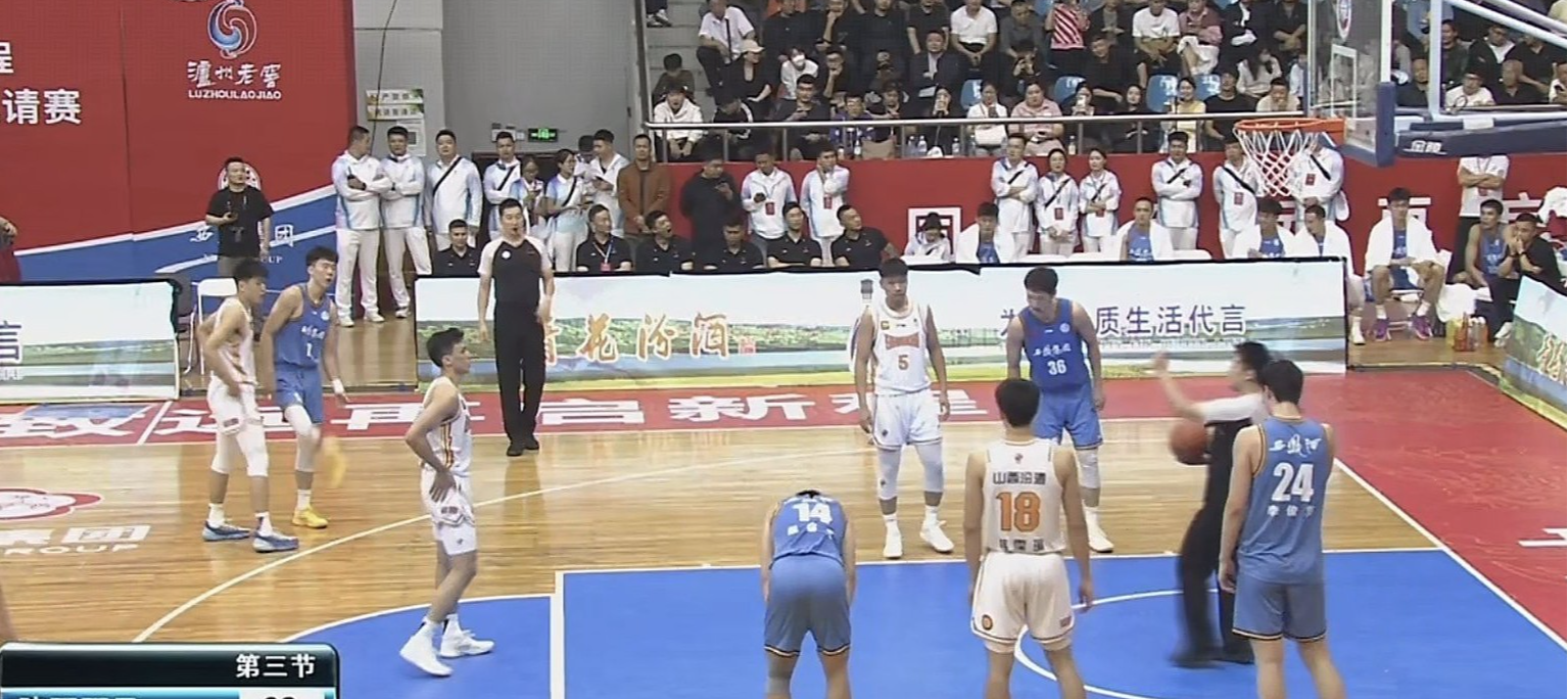 叫停回来。双方进行三分对飙!赵嘉义三分再中,于米提三分再中。纪卓三分又来。何家辰冲篮打进,赵嘉义中投也有。半场比赛结束,陕西西凤53比38山西汾酒。