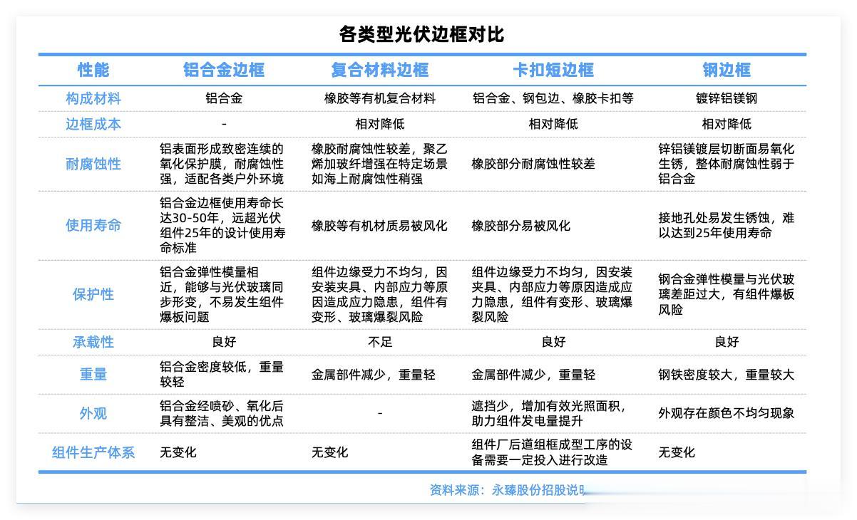 光伏边框光伏边框是组件的“骨架”和“防护盾”,主要功能是保护电池片、固定组件结构、增强机械强度、便于安装与运输,并延长组件使用寿命。