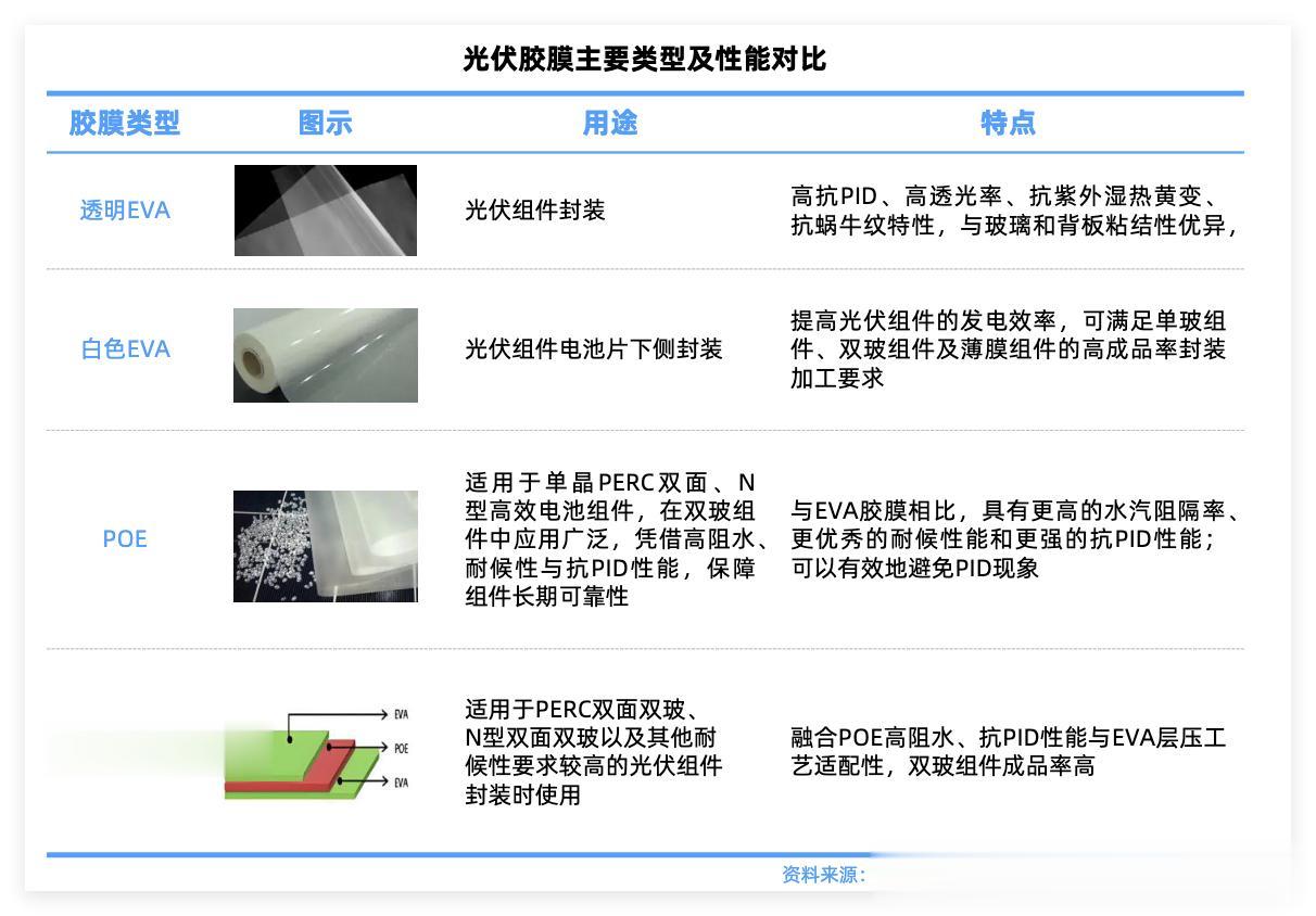 POE胶膜与N型电池HJT、TOPCon及柔性薄膜电池如砷化镓兼容性好,因此也是太空光伏中追求高转换效率的新型电池提供低应力和高粘接强度的封装方案。