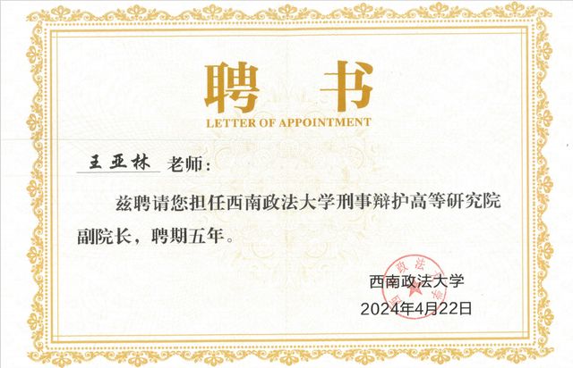 作为学者型律师,王亚林几十年来笔耕不辍,30多篇论文获省部级奖项,出版有《律师学》《行政复议理论与实践》《刑事辩护执业现状与经验技巧》《精细化辩护》等著作,其中《精细化辩护》是法律出版社2017年畅销书,2021年1月再版,9月第三版。2025年1月《精细化辩护》被西南政法大学评为“当代十大刑辩好书”。