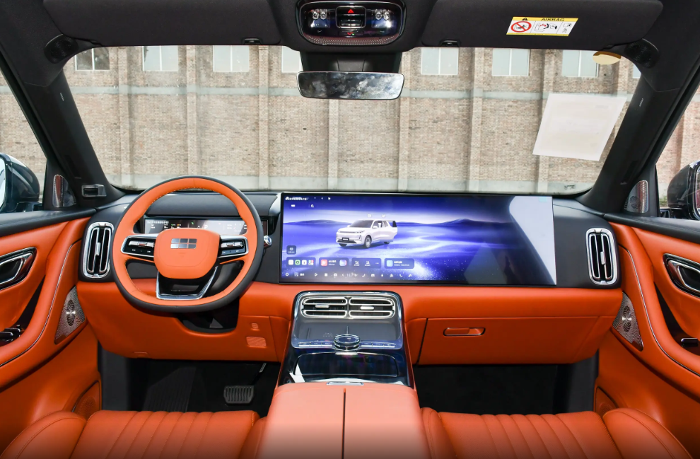 在座舱内部,吉利银河M9同样采用简约的设计风格,甚至为了展现科技气息,它搭载的液晶仪表仅仅12.66英寸。我知道,很多人都习惯通过液晶仪表观察车辆的行驶状态,会认为它这么小的液晶仪表使用起来不方便。但是没关系,因为吉利银河M9有部分配置版本还搭载了32英寸的AR-HUD抬头显示系统,能够清晰显示各种行车信息,并且给人更加安全的用车体验。与此同时,吉利银河M9部分中低配版本车型搭载15.4英寸的3K中控屏,顶配和次顶配版本车型则是搭载30英寸的双联屏(中控屏与副驾驶屏),能够给人更强的科技体验。