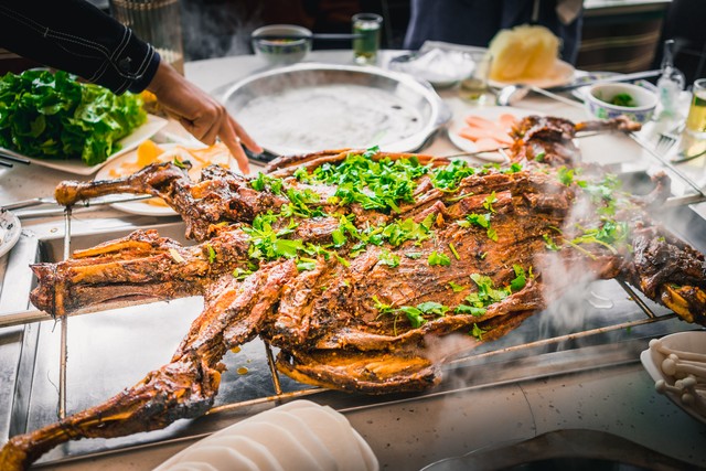 夜幕降临,响沙湾变得更加神秘而迷人。一轮明月高悬于夜空之中,洒下清冷的光芒。营地里燃起了篝火,人们围坐在一起,分享着美食和故事。火光映照着每个人的脸庞,大家的脸上都洋溢着幸福的笑容。我也加入了他们的行列,品尝着烤全羊、手把肉等特色美食,喝着醇香的美酒,感受着浓浓的民族风情。此时,有人拿起吉他弹唱起来,其他人也跟着拍手附和。歌声、笑声、欢呼声交织在一起,打破了夜晚的宁静。我抬头仰望星空,繁星点点,如同镶嵌在黑色天幕上的宝石。在这浩瀚宇宙面前,人类是如此渺小,但却又如此充满生命力。