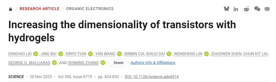 论文标题 Increasing the dimensionality of transistors with hydrogels