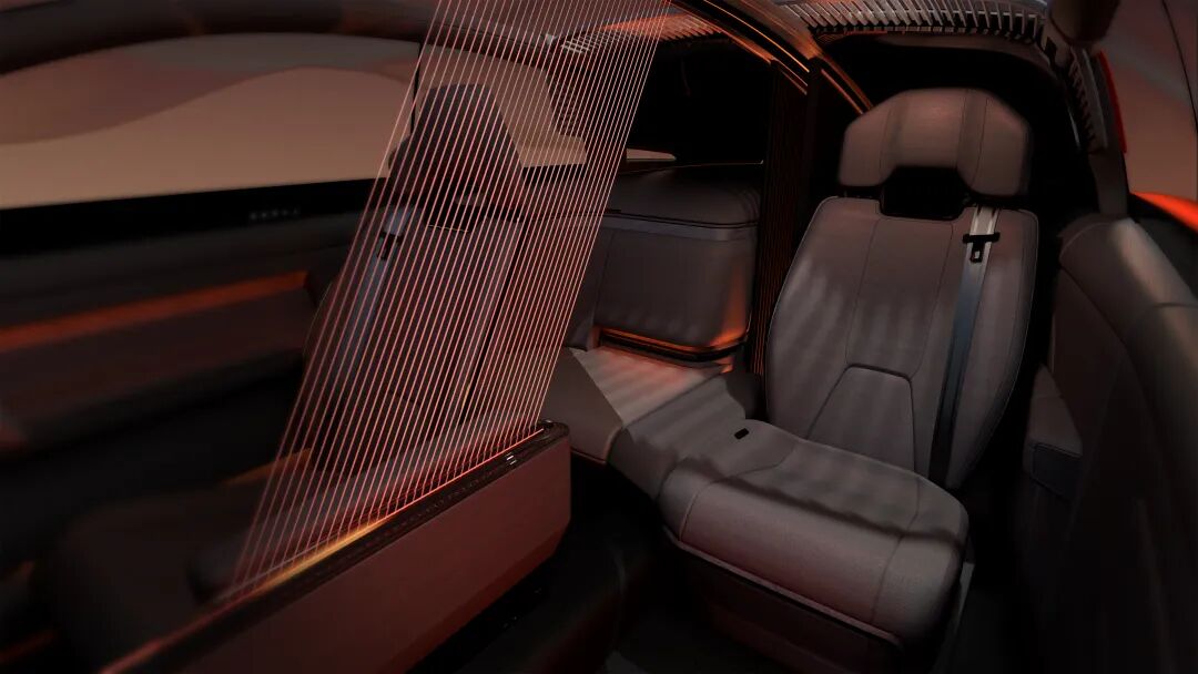 这款独立的世纪轿跑采用四座布局,配备轭式方向盘和一款令人耳目一新、类似智能手机的紧凑型信息娱乐屏幕。中央隆起结构将前后排座椅分隔开来,而无B柱设计让进入后排更为便捷。有趣的是,该车采用不对称车门设计,让人想起特立独行的现代飞思——乘客侧(左侧)有两扇滑动门,而驾驶员侧(右侧)只有一扇车门。