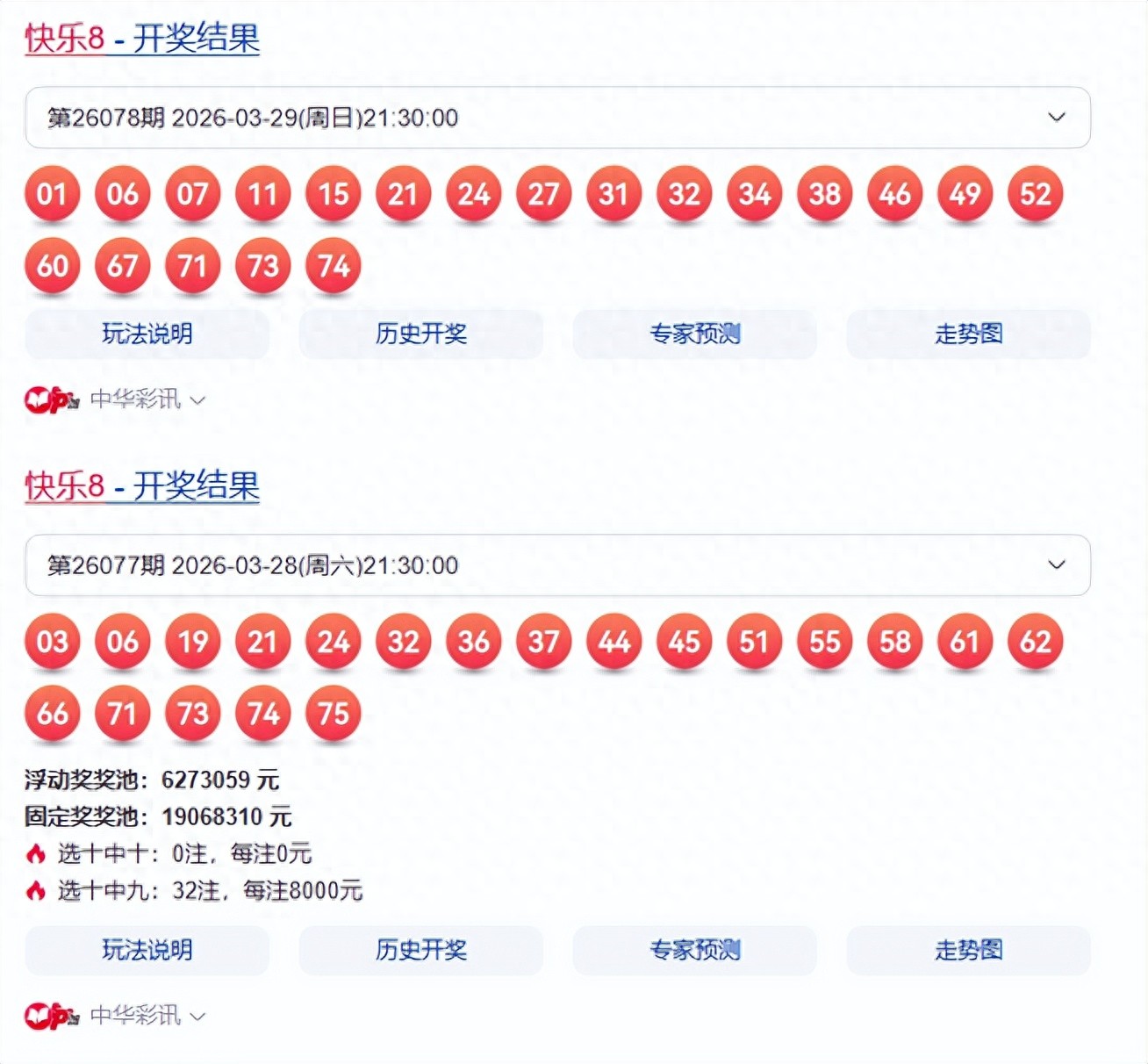 一起来回顾一下本期的开奖号码:连号 这期有 3 组 2 连号,分别是 06-07、31-32、73-74,没有 3 连及以上,属于常规出号形态,符合快乐 8 常见的 2 连号为主规律。