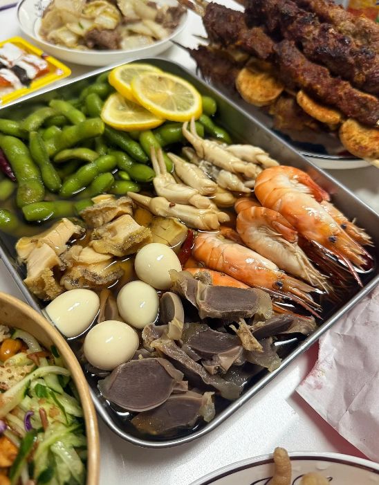 猪肝冰镇后竟有了鹅肝般的细腻,在舌尖轻轻一抿便化开,毫无腥气,只剩糟香的回甘。猪肚原本的嚼劲被冷泡驯化,变成了脆嫩中带着柔韧的奇妙口感。最惊艳的是猪大肠——油脂在低温下凝结成半透明的冻,与糟卤融为一体,咬下去,先是冰凉的爽脆,随即是脂肪在口中融化的温润,糟香、肉香、酒香层层释放。