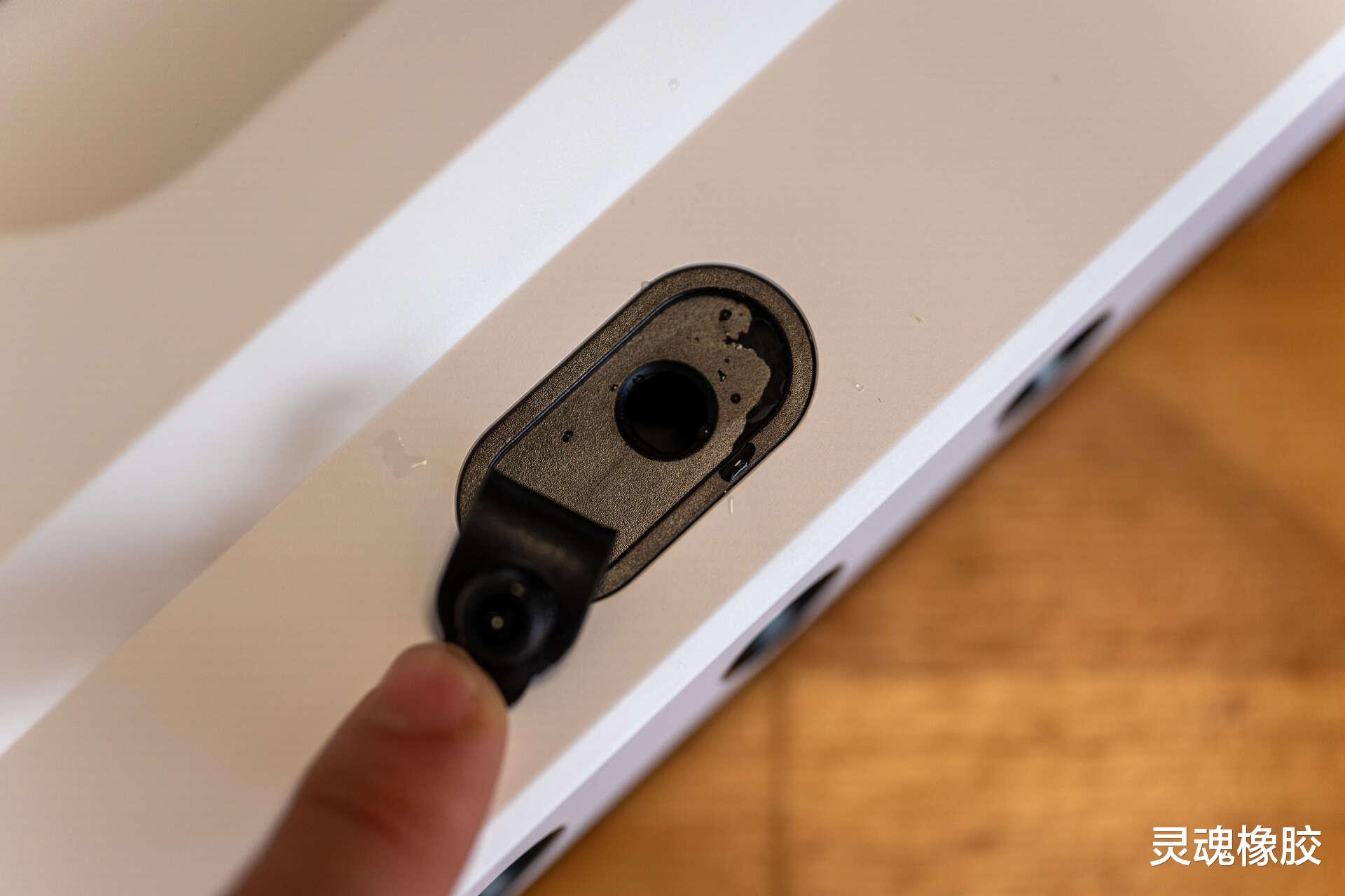 在擦窗机器人的电源键下方是安全提手,上面有希亦的商标,大家可以看到做工很棒,细节是到位的,擦窗机器人也要很精致!