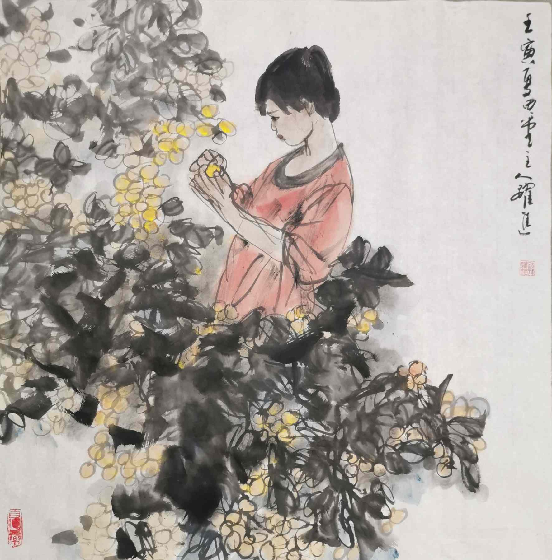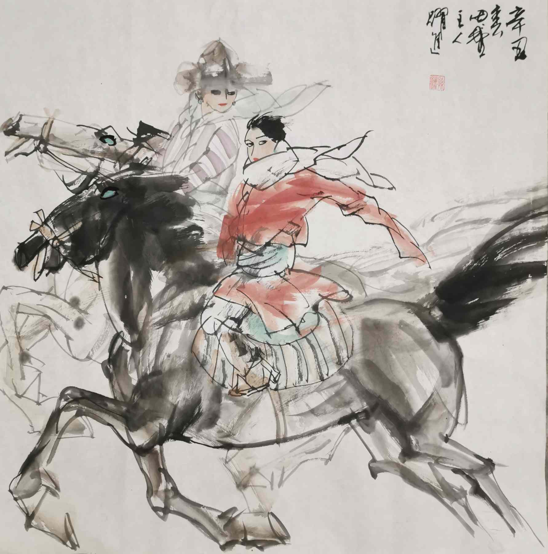 古人论丹青,讲究形神兼备,因有型而精彩,因有神而上品。当代著名画家孙跃进先生,研习写意国画人物得真经,就是一-位形神兼备传承丹青真经的大手笔。他的绘画艺术横跨人物动植两大门类,写意物象夺其精神掠其体貌,形神兼成,令人赏心悦目,显示出妙有华姿的精神品貌。当代画家修习中国传统绘画艺术,有诸多不同目的。不同目的,导致书画品位与收获各不相同。有的画家以画而谋生,多为匠工。有的画家以画逐名,多为俗气。还有的画家以自娱为目的,多显肤浅。唯有把丹青艺术当成修身养性的陶冶,方可以像著名画家孙跃进先生这样,收获画如其人的正宗造诣。孙跃进先生精心研习书画艺术,无俗利之逐取,无虛名之追求,亦不以绘画而谋生活,所以他的丹青修炼,完全是出于修身养性,陶冶情操的目的。目的纯粹,画风超脱。纵观他的绘画作品,无一例外,都显发着丹青无挂碍,清许质如泉的透彻与明净。他毕业于中央美术学院徐悲鸿画院研修班,有着深厚的笔墨理论涵养,所以对外师造化中得心源法则理解特别深刻,实践特别执着。观人物姿态,心穷万物之源,不但是他的艺术目标,也是一-场永无止境的丹青修行。他能沟通心源与造化的双向对流,别人熟视无睹的人物景象,可以成为他描述人物造意的心灵感触。