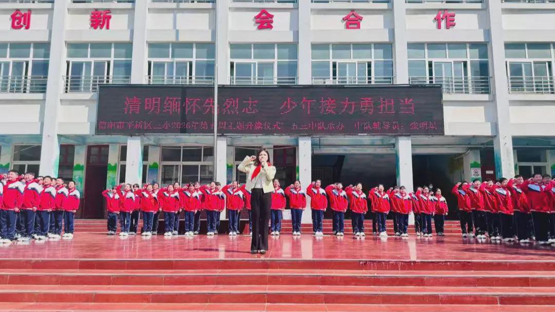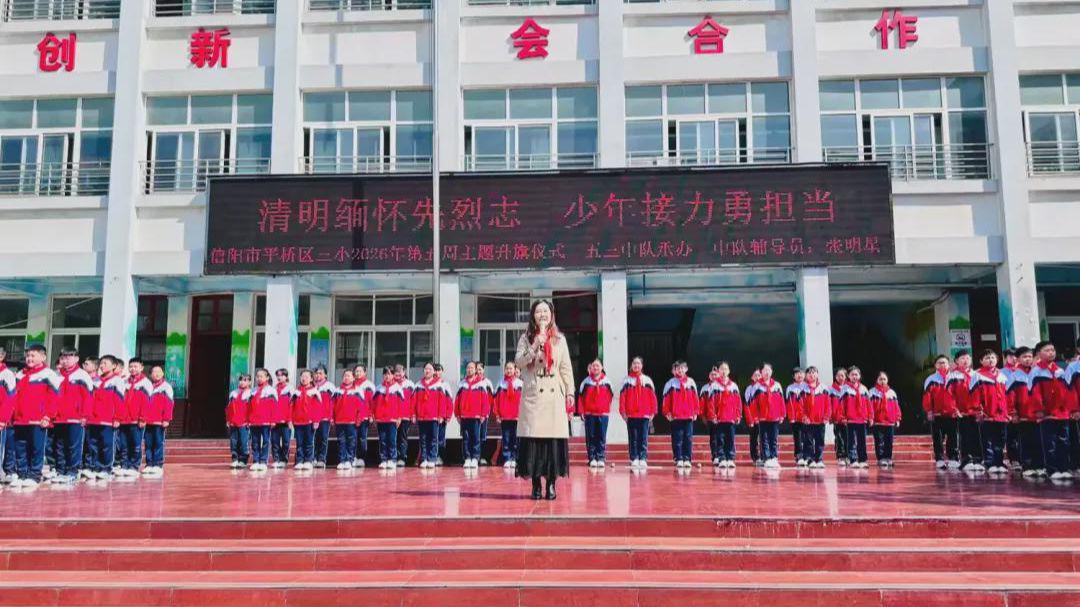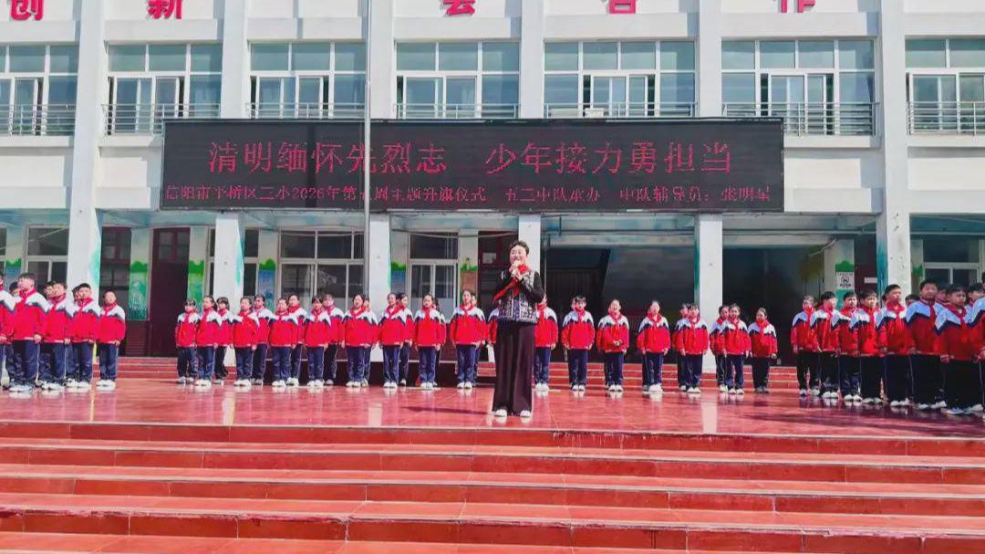 4月1日上午,信阳市平桥区第三小学举行“清明缅怀先烈志,少年接力勇担当”第五周主题升旗仪式,深切缅怀革命先烈丰功伟绩,传承红色基因,厚植学生爱国主义情怀,引导少先队员铭记历史、勇担使命。