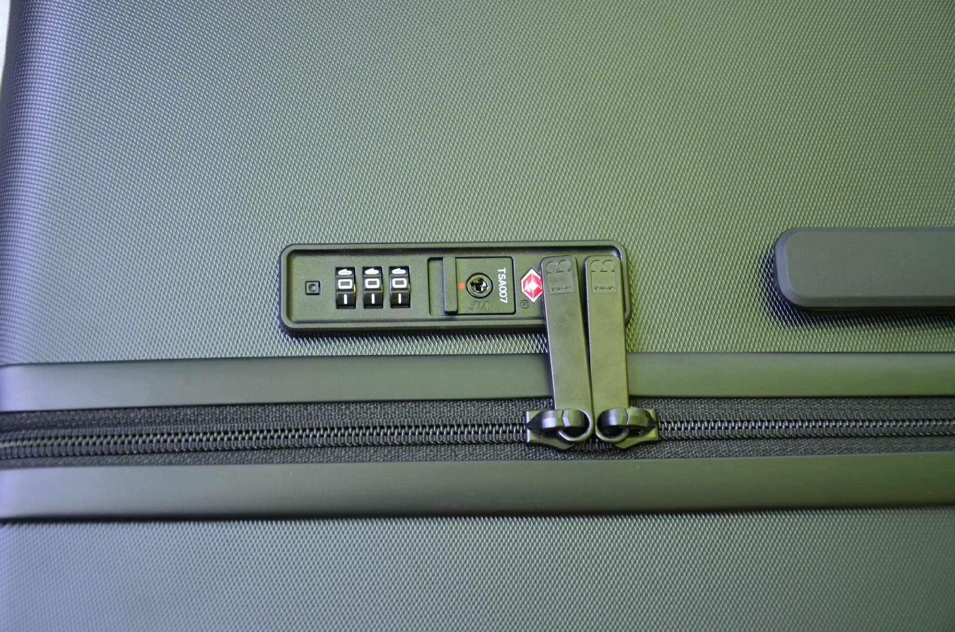 纯PC箱,因为箱体的PC材质特性,搭配拉链最好,再加上海关锁就够了,这已经成为PC箱的标配。