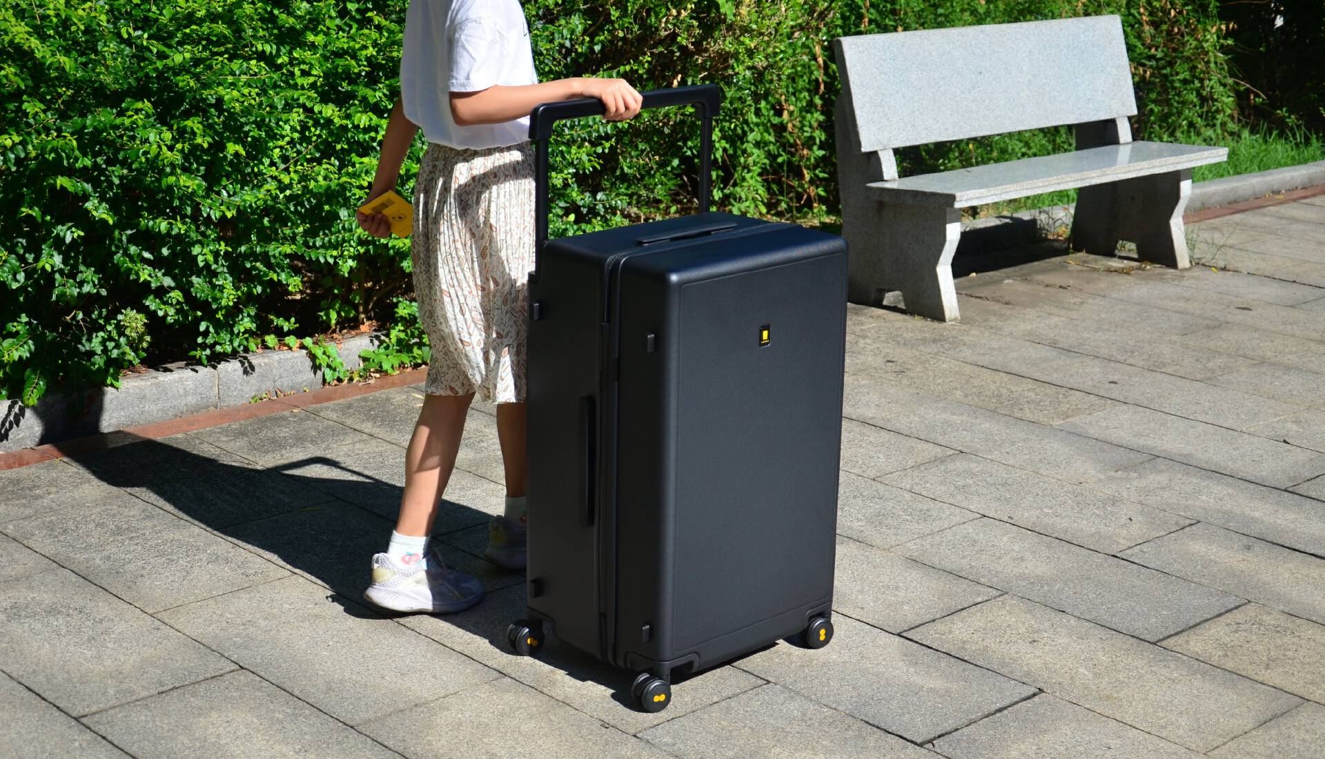 宽拉杆简单而睿智地解决了这个问题,拉杆贴在箱体两边,用手可以摸到,中间区域完全归还用户,怎么摆放都可以。