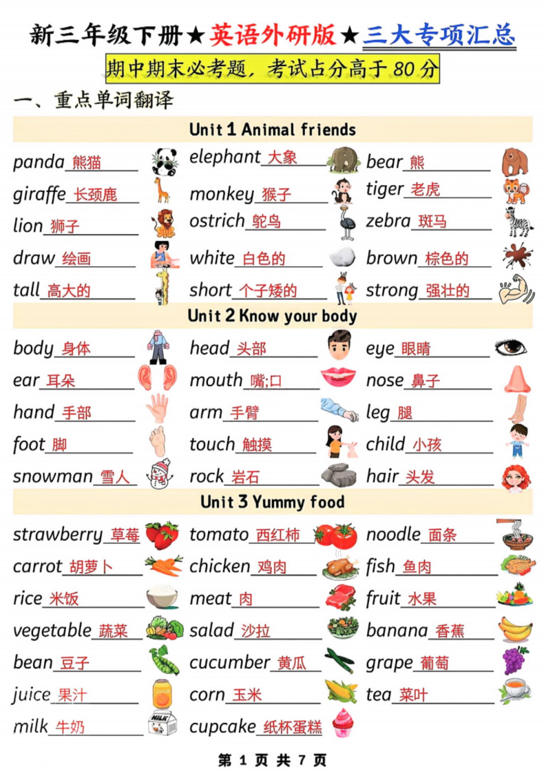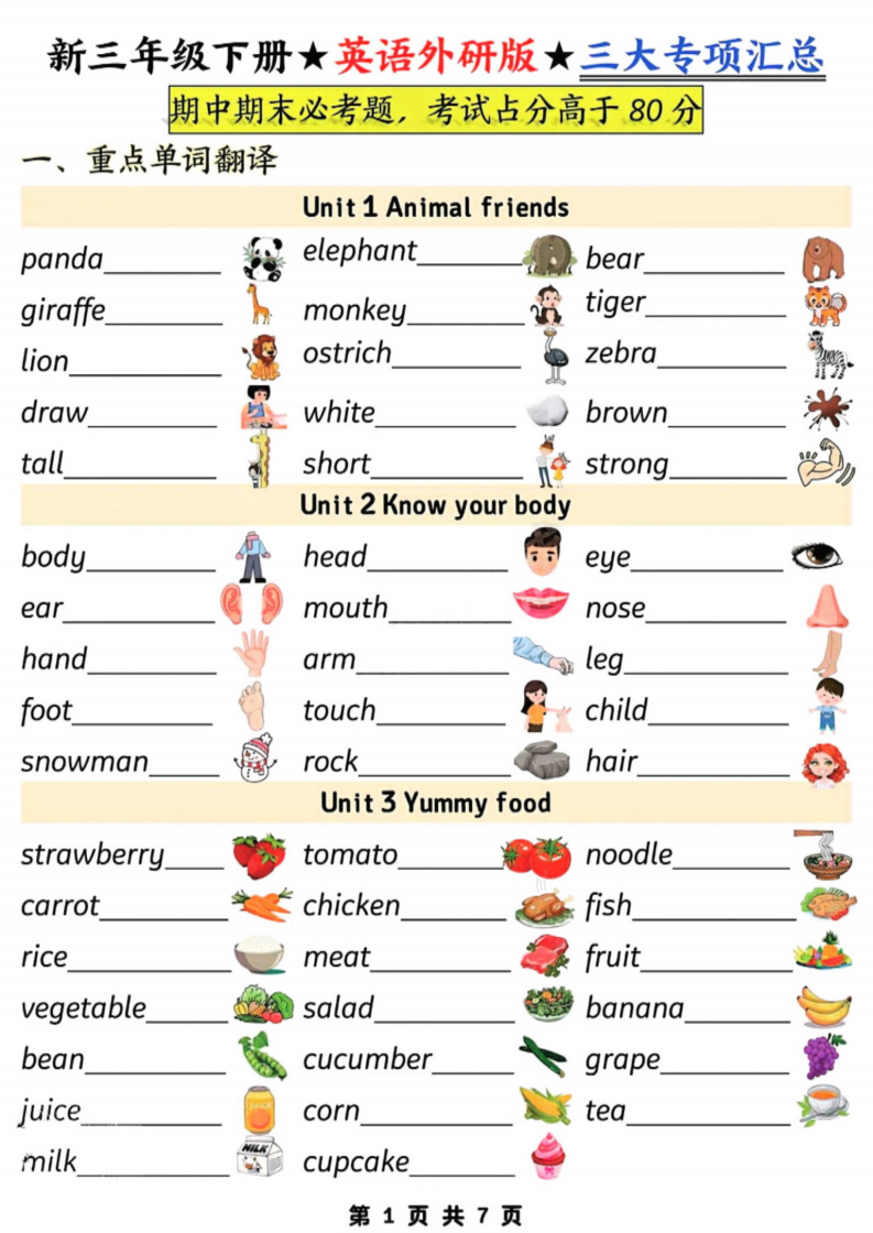 三年级下册英语三大专项汇总《外研版(三起)》 家长打印起来