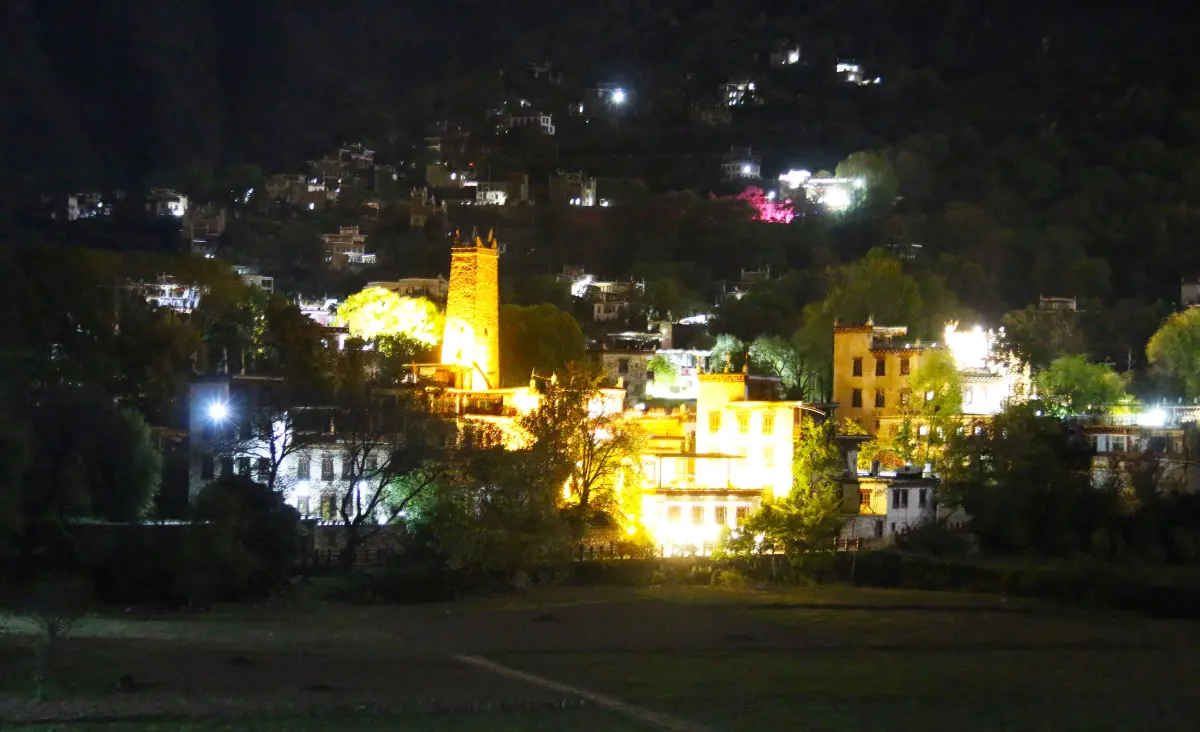 夜幕下宁静的藏寨