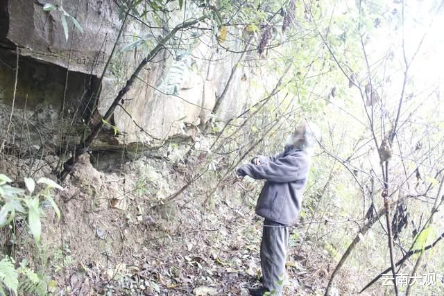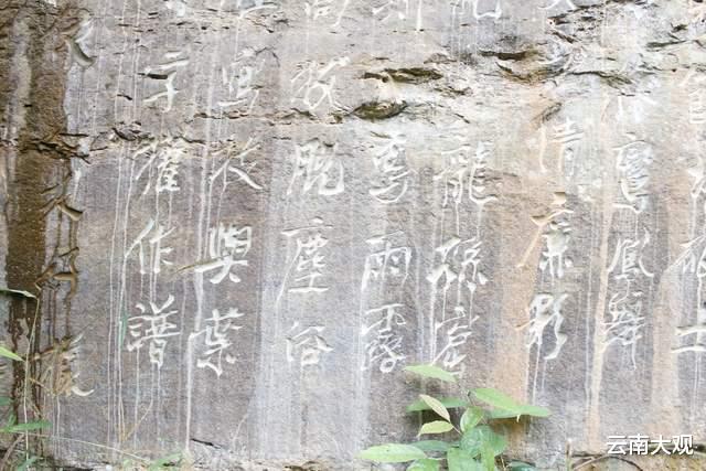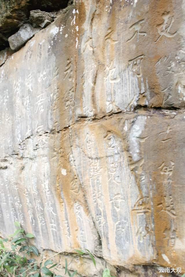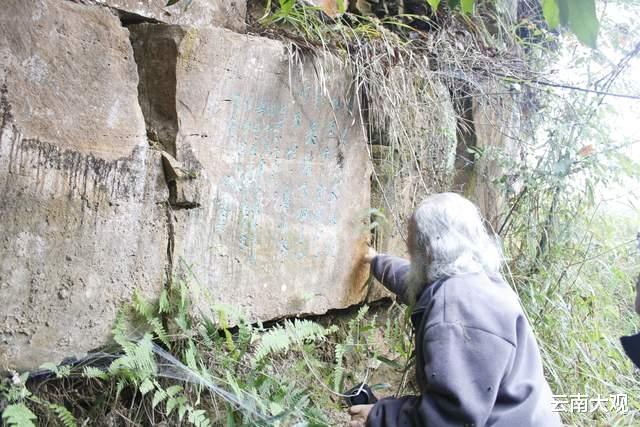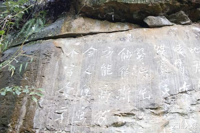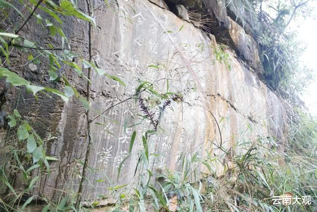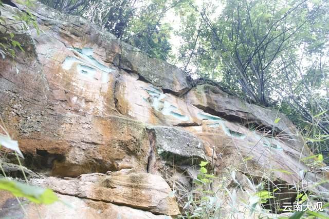 很多字隐没在山林之间,山路湿滑,得见不易。