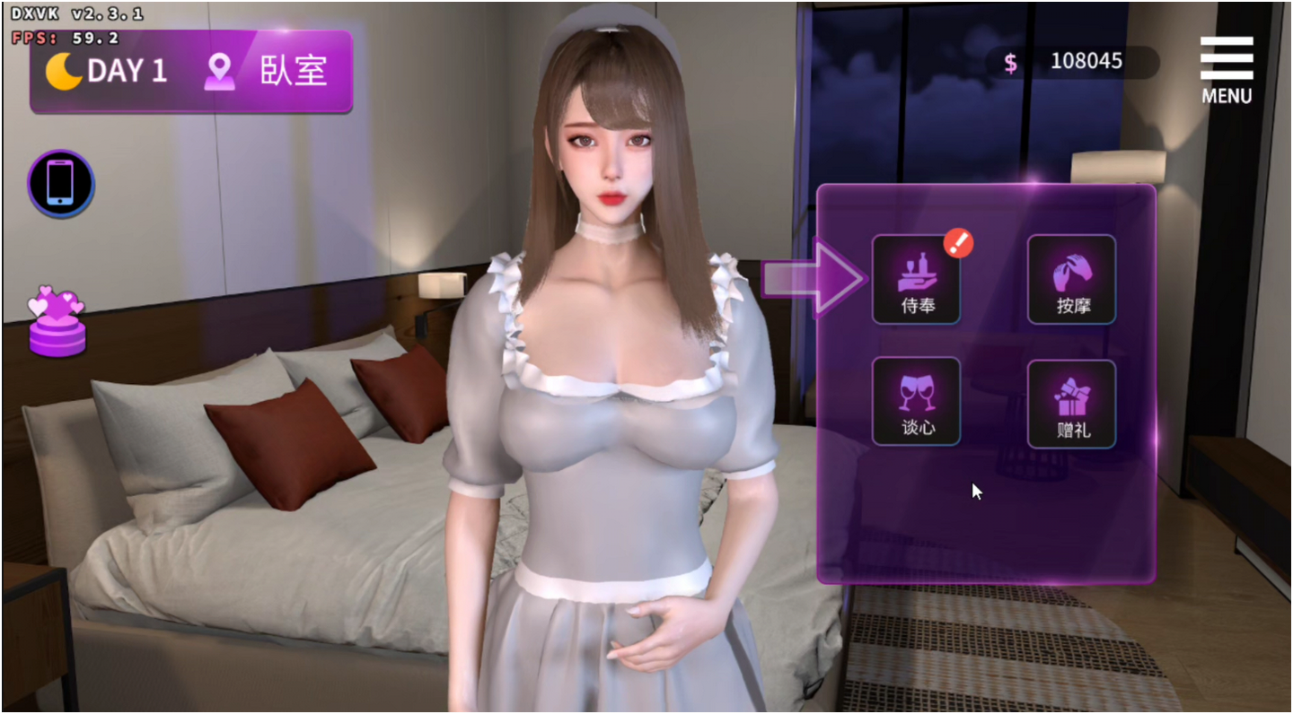 再接下来说说游戏的主要玩法:你每日早上可以替女仆去安排工作,有不同的选项可以选择;在上班的时候也可以选择与女仆、秘书进行互动或者炒股;到了晚上还可以选择是否出门约会,或者是在别墅里与女仆一起度过甜甜蜜蜜的一晚。