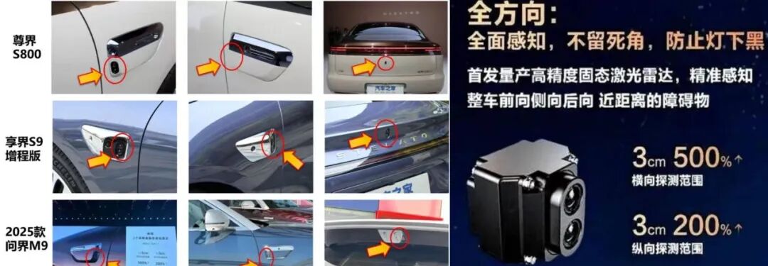 首先为什么说中国企业把固态激光雷达白菜化了。因为不只是享界S9T而是基本上鸿蒙智行所有旗舰车型比如尊界S800和问界M9等都在车身两侧以及车尾部配备了这样的高精度固态激光传感器。而如今禾赛科技宣布将在2026年把年产能从200万台翻倍至400万台标志着依托自研光矢量芯片,禾赛固态激光雷达正式进入大规模量产阶段。并将基于全新的小型化ETX系列和英伟达达成战略合作。