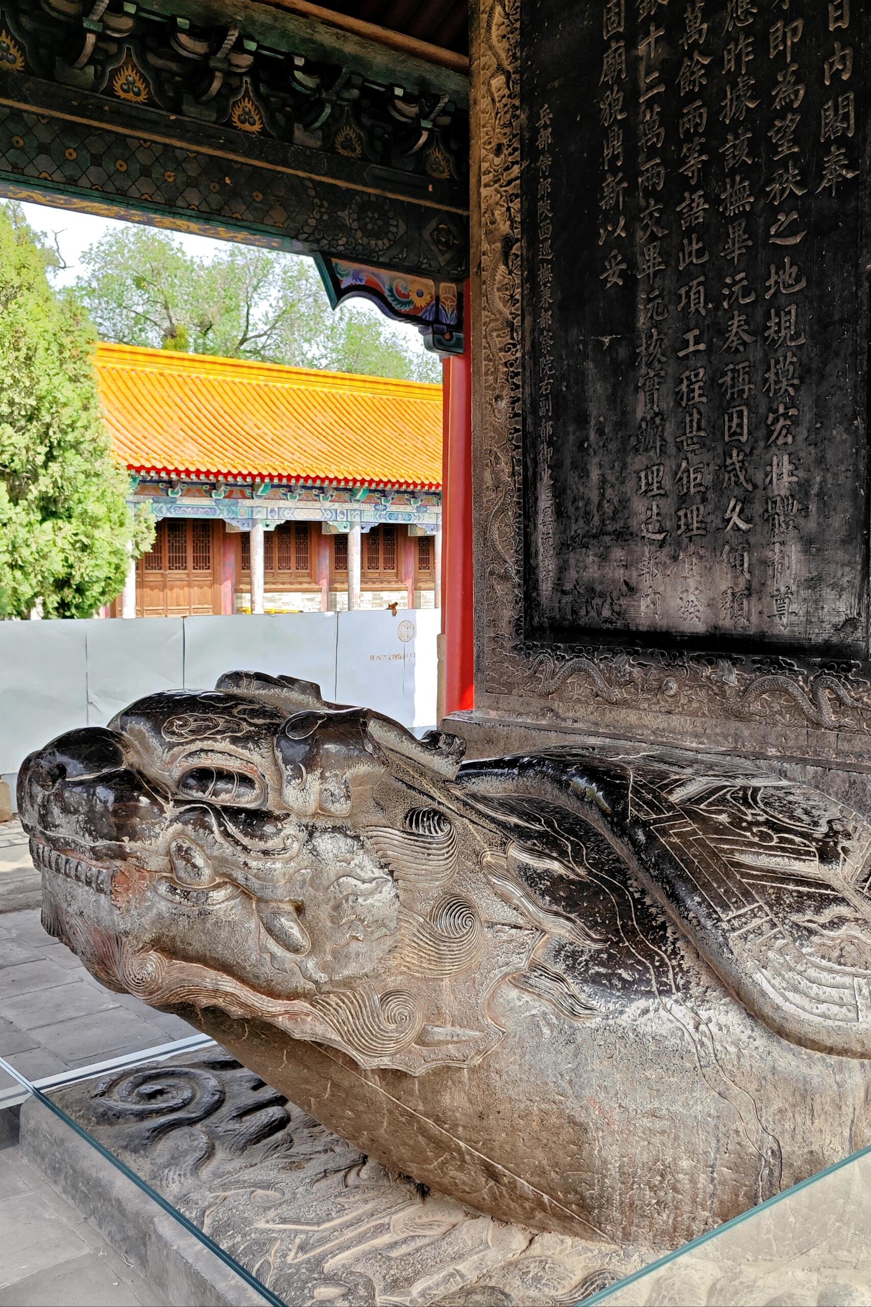 明代的扩建带来视觉革命。嘉靖三十四年(1555年)关中大地震后,朝廷征调山西、河南工匠重建西岳庙,引入山西琉璃工艺,造就了现存的琉璃影壁与脊饰。灏灵殿正脊的"二龙戏珠"琉璃构件,采用"三色窑变"技术,龙身的黄釉与云气的青釉在高温中自然交融,形成"黄中透绿"的特殊釉色,这种工艺仅存于明代山西阳城窑口。值得关注的是,影壁的"五岳真形图"雕刻中,华山的图形被刻意放大,且用金线勾勒,暗示着明代帝王对"西岳为五岳之宗"的政治定位。